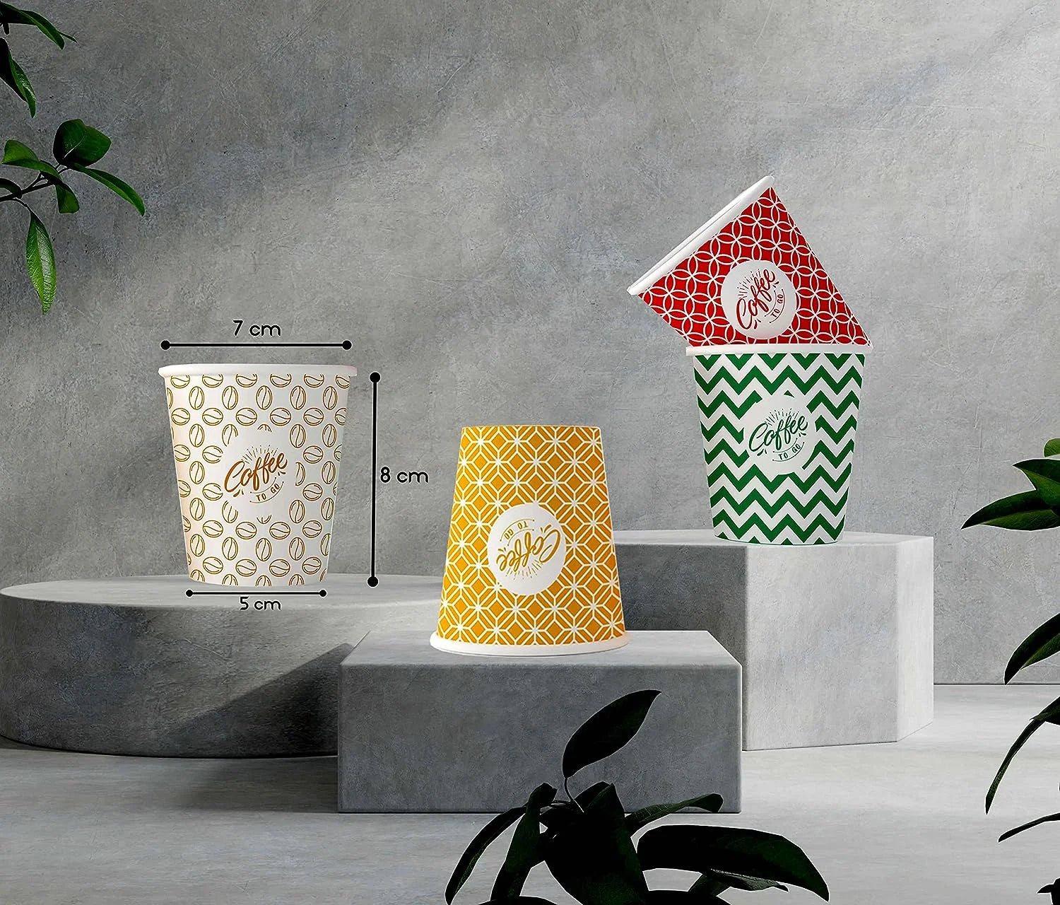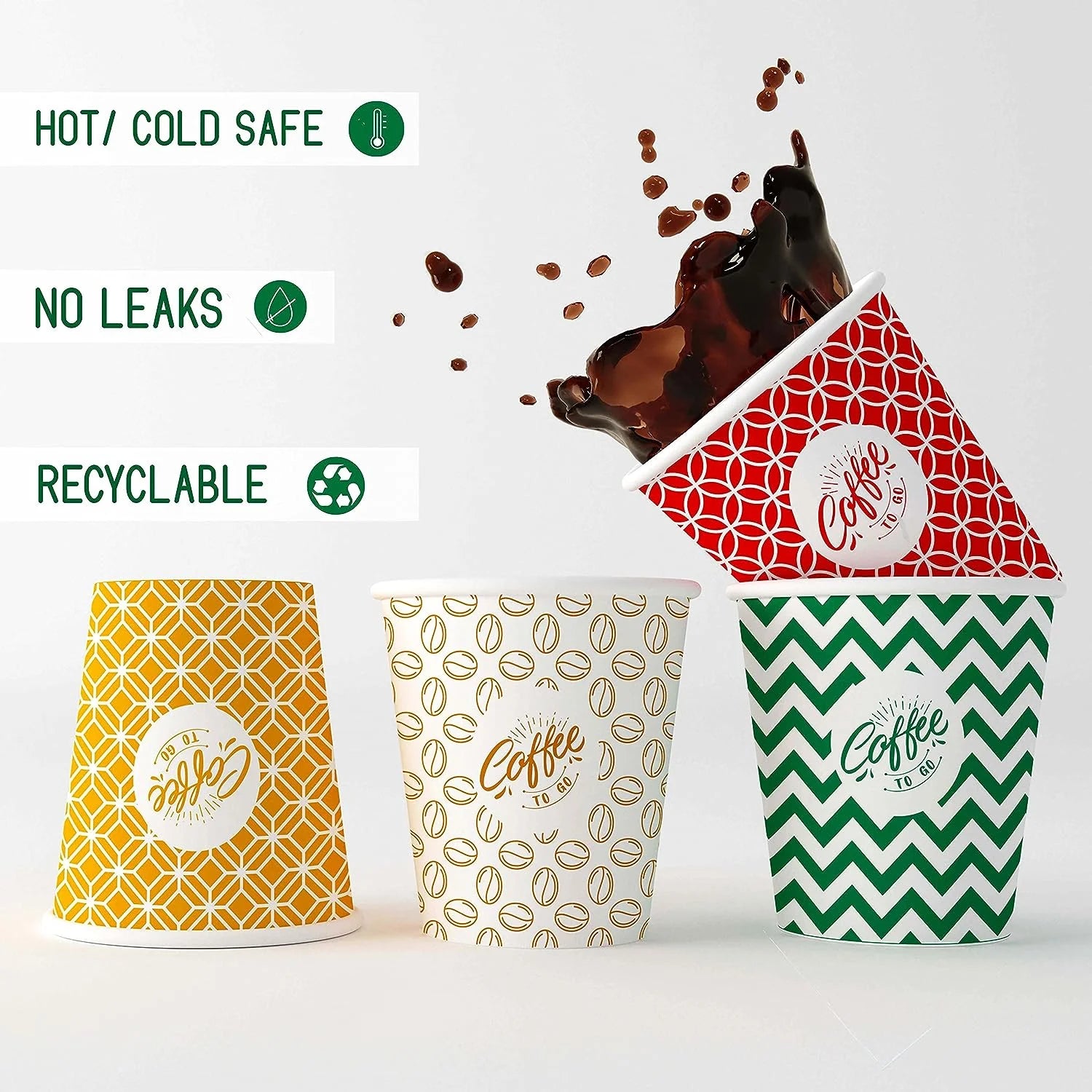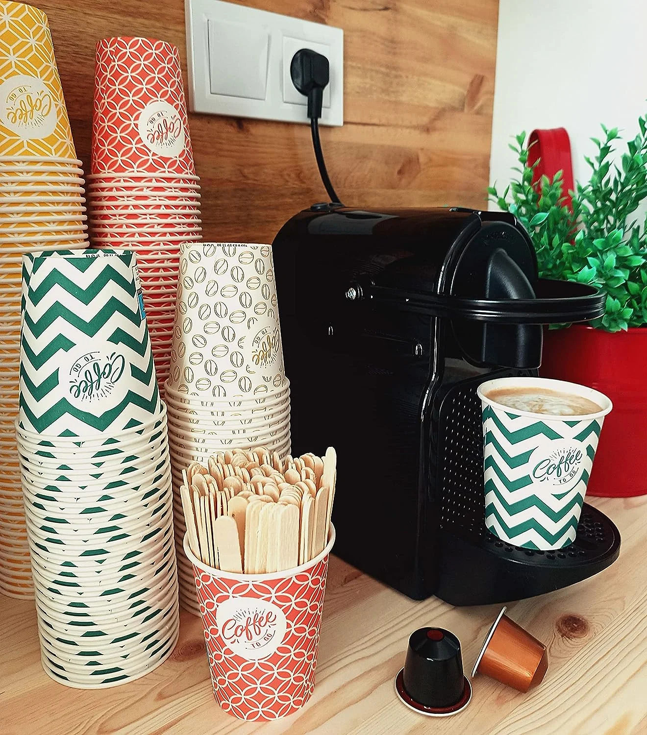 7 Oz, Multicolore Espresso Gobelets en Carton avec Agitateurs en Bois,Écologique ,Jetables,Résistant à la Chaleur,Carton de Qualité,Idéal pour Toutes Les Boissons Chaudes ;Café,Thé,Chocolat etc. -500